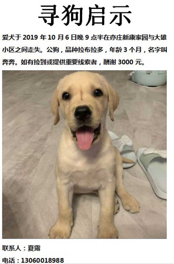 爱犬于10月17日在通州潞苑...